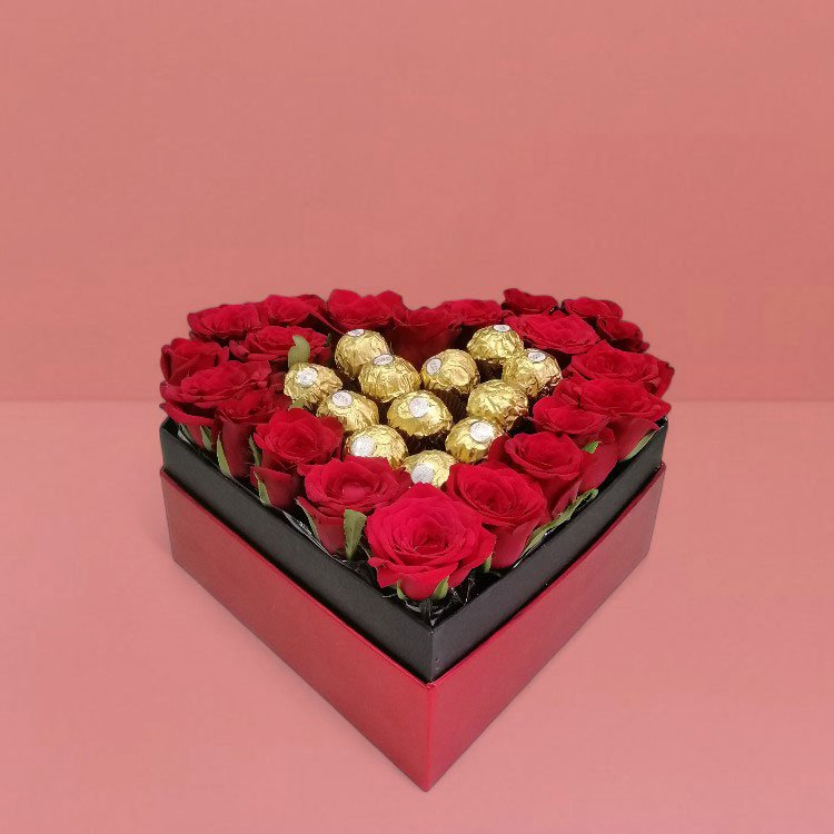 22 وردة حمراء و 12 قطعة شوكولاتة فيريرو