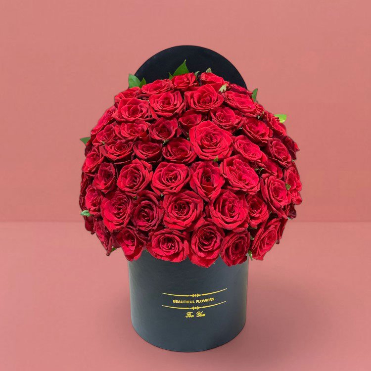 A luxurious box featuring 60 carefully arranged red roses — a bold and timeless expression of deep love and romance. The perfect gift for special occasions and unforgettable moments.